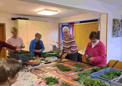 12 Mitglieder unter der fachkundigen Leitung von Maria Meier trafen sich im Pfarrheim, um Palmbuschen für den Palmsonntag zu basteln. Herzlichen Dank an alle Helferinnen und auch an die Spenderinnen von Grünzeug!